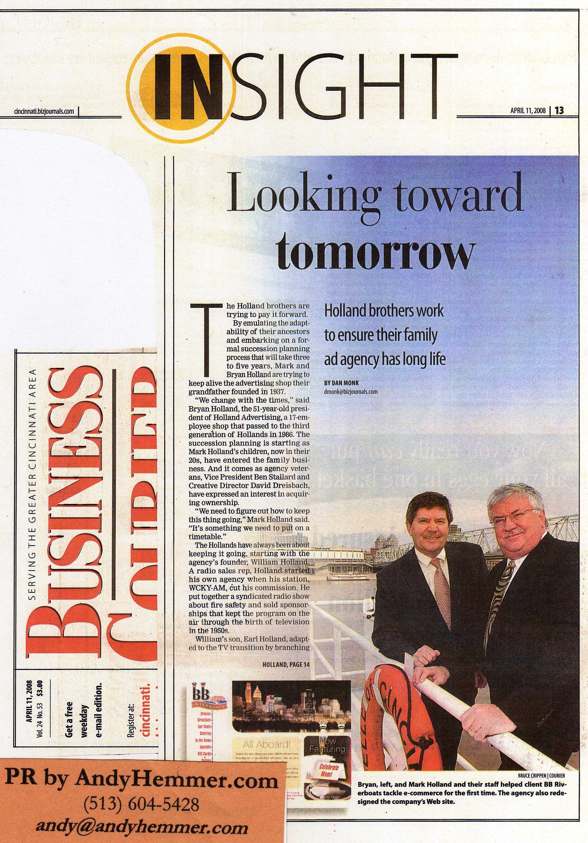 Here’s some previous Greater Cincinnati media coverage of Holland …. first up, The Cincinnati Enquirer, with a fantastic story from 2007 on the vendor network employed by Holland …. a manifestation of the agency’s popular “Vendor of the Month” club: