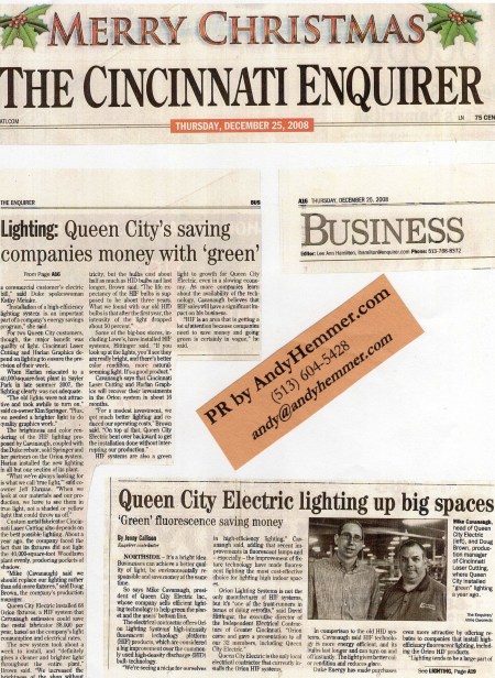 That’s when Queen City Electric was featured in The Cincinnati Enquirer – on Christmas Day, 2008, specifically.
