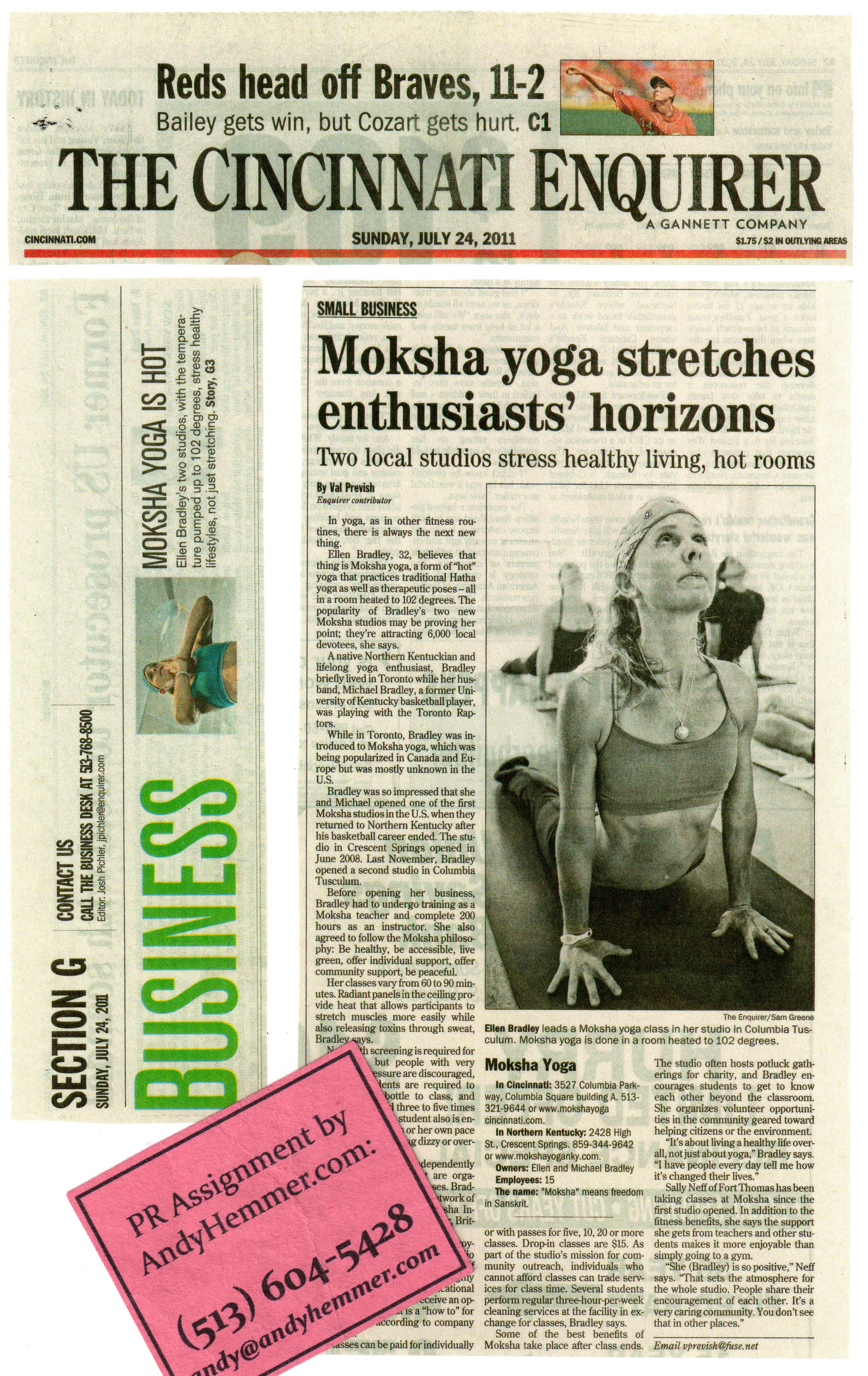 Yesterday (7.24.11), Moksha Yoga was featured in the Sunday Business section of The Cincinnati Enquirer.